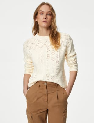 The soft pointelle knit of this long-sleeved jumper brings delicate texture to your outfits. It's designed in a regular fit and features a crew neck for timeless appeal. Ribbed trims and a mix of stitches complete this piece. n M&S Collection: easy-to-wear wardrobe staples that combine classic and contemporary styles.