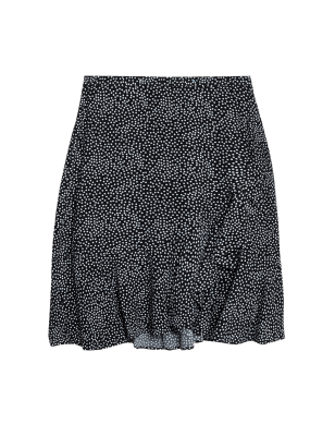 Swish into the weekend in this polka dot mini skirt. This mock wrap style is cut to a regular fit and sits high on the waist for a flattering look. Asymmetric frill detailing gives this versatile piece a playful finish. It fastens with a concealed zip at the back. Made with responsibly sourced viscose.n M&S Collection: easy-to-wear wardrobe staples that combine classic and contemporary styles.