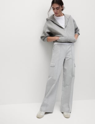 Womens M&S Collection Ponte Utility Wide Leg Trousers - Grey Marl, Grey Marl