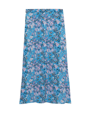 Pull on this printed midi skirt to complete your elegant ensemble. It has a regular fit, with a flattering A-line shape and an elasticated waist for comfortable wear. The button-down front finishes with a split at the hem for easy movement. n M&S Collection: easy-to-wear wardrobe staples that combine classic and contemporary styles.
