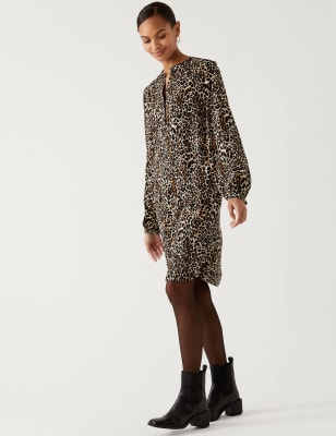 Embrace eye-catching print in this knee-length shift dress. It's designed in a comfy regular fit, with a classic crew neckline. The long sleeves are slightly full and finish in neat cuffs. This piece fastens at the front with a row of discreet buttons and features side pockets for a practical touch.nM&S Collection: easy-to-wear wardrobe staples that combine classic and contemporary styles.