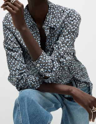 Womens M&S Collection Printed Collared Button Through Shirt, Blue Mix