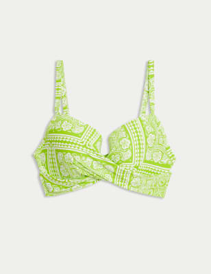 Womens M&S Collection Printed Wired Padded Plunge Bikini Top - Lime Mix, Lime Mix