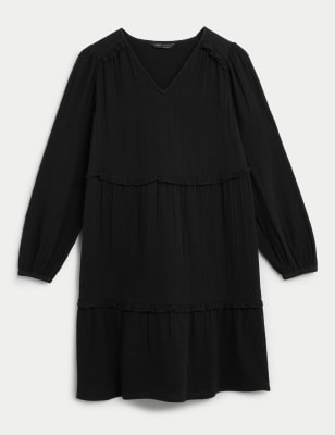 We've cut this v-neck dress from pure double cloth cotton for a cosy feel. It has a relaxed fit with ruffle-trimmed tiers through the mini skirt for a playful touch. We've styled it with long gathered sleeves and stitched frills on the shoulders for an added flourish. We only ever use responsibly sourced cotton for our clothes. M&S Collection: easy-to-wear wardrobe staples that combine classic and contemporary styles.
