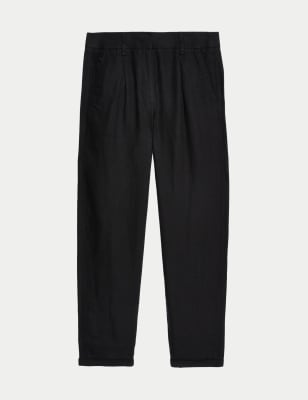 These pure linen trousers are a lightweight and breathable option for warm days. They're designed in a comfy tapered fit and feature a flattering high waist with a streamlined hook and bar fastening. Complete with belt loops and handy side pockets for your essentials.n M&S Collection: easy-to-wear wardrobe staples that combine classic and contemporary styles.