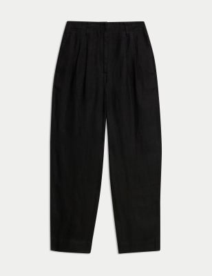 Womens M&S Collection Pure Linen Tapered Trousers - Black, Black