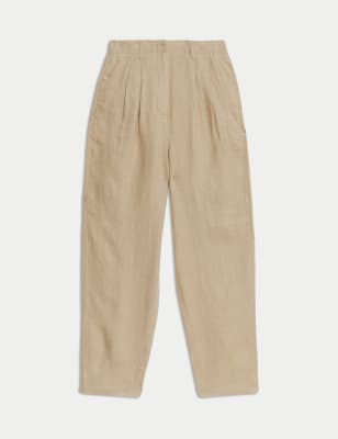 Womens M&S Collection Pure Linen Tapered Trousers - Natural Beige, Natural Beige