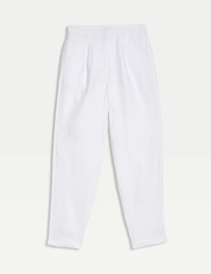 These pure linen trousers are a lightweight and breathable option for warm days. They're designed in a comfy tapered fit and feature a flattering high waist with a streamlined hook and bar fastening. Complete with belt loops and handy side pockets for your essentials.n M&S Collection: easy-to-wear wardrobe staples that combine classic and contemporary styles.