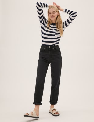 Not sure what today holds? Reach for these cotton-rich, high-waisted jeans. The relaxed fit features tapered legs for a comfortable, contemporary shape. They're secured with the traditional zip and button fastening, and finished with shining copper rivets at the pockets. We only ever use responsibly sourced cotton for our clothes. M&S Collection: easy-to-wear wardrobe staples that combine classic and contemporary styles.