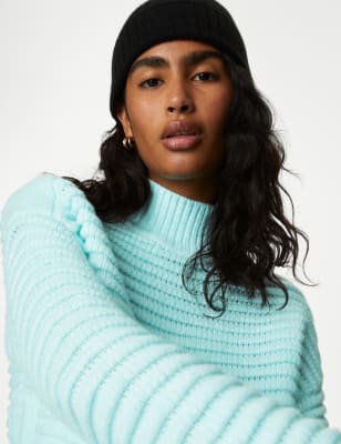 Pull on this jumper for a snuggly feel in colder weather with its chunky ribbed knit. It's designed in an easy regular fit, with relaxed dropped shoulders and a cosy funnel neckline for extra warmth. Side slits in the hem add to the laid-back look.n M&S Collection: easy-to-wear wardrobe staples that combine classic and contemporary styles.