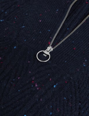 This ribbed longline jumper helps you stay cosy on chilly days. It has a roomy relaxed fit, with a half-zip fastening at the funnel neck for versatility. Long sleeves and ribbed trims help to lock in heat, while added stretch accentuates the comfortable feel. n M&S Collection: easy-to-wear wardrobe staples that combine classic and contemporary styles.