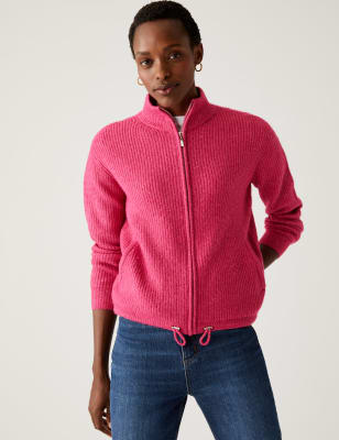 Stay warm during the colder months with this zip-through cardigan in a cosy rib knit. It's designed in a regular fit, with added stretch for maximum comfort. The toggle waist and ribbed trims help lock out the cold, while handy pockets at the sides are ideal for carrying your essentials. Made with recycled polyester.n M&S Collection: easy-to-wear wardrobe staples that combine classic and contemporary styles.