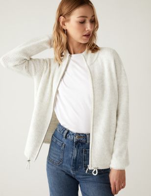 Stay warm during the colder months with this zip-through cardigan in a cosy rib knit. It's designed in a regular fit, with added stretch for maximum comfort. The toggle waist and ribbed trims help lock out the cold, while handy pockets at the sides are ideal for carrying your essentials. Made with recycled polyester.n M&S Collection: easy-to-wear wardrobe staples that combine classic and contemporary styles.