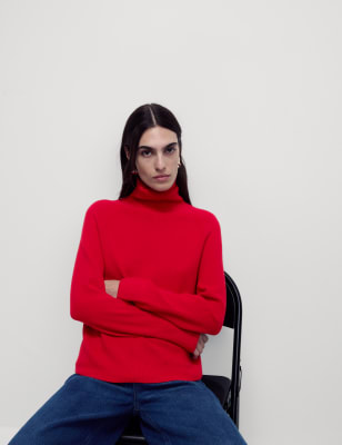 Womens M&S Collection Ribbed Roll Neck Jumper - Lacquer Red, Lacquer Red