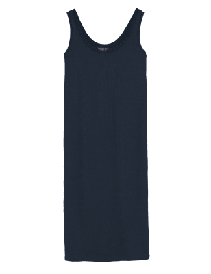 Womens M&S Collection Ribbed Round Neck Midi Column Dress - Navy, Navy