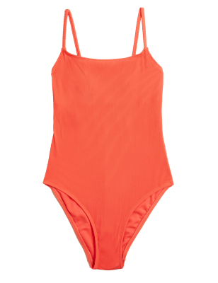 Womens M&S Collection Ribbed Square Neck Swimsuit - Bright Orange, Bright Orange