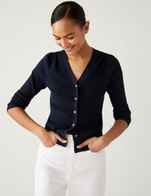 This ribbed cardigan is perfect for transitioning between the colder and warmer seasons. It's crafted in a regular fit and features a flattering v-neck. The cardigan fastens with buttons down the centre and has tiny pleats on the shoulders for a touch of femininity. n M&S Collection: easy-to-wear wardrobe staples that combine classic and contemporary styles.