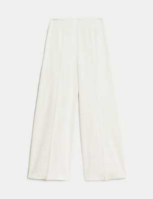 Womens M&S Collection Satin Look Side Zip Wide Leg Trousers - Ivory, Ivory
