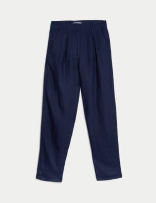 These pure linen trousers are a lightweight and breathable option for warm days. They're designed in a comfy tapered fit and feature a flattering high waist with a streamlined hook and bar fastening. Complete with belt loops and handy side pockets for your essentials.n M&S Collection: easy-to-wear wardrobe staples that combine classic and contemporary styles.