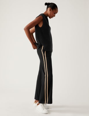 Womens M&S Collection Side Stripe Wide Leg Trousers - Black, Black