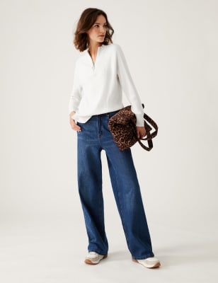 Sporty style meets cosy comfort with this half-zip jumper. Its relaxed fit and soft-to-the-touch yarn give ultimate comfort. The ribbed design feels wonderfully snug and is enhanced by ribbed trims at the cuffs, hem and funnel neck. Made with responsibly sourced viscose. n M&S Collection: easy-to-wear wardrobe staples that combine classic and contemporary styles.