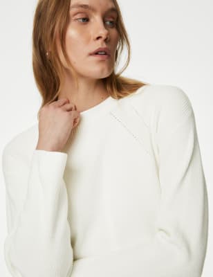 Spun from soft-touch yarn, this longline jumper makes a cosy addition to your knitwear collection. It's designed in a regular fit, with a ribbed texture that creates a naturally stretchy feel. Side hem splits add effortless movement to the design. It's complete with a neat crew neckline. n M&S Collection: easy-to-wear wardrobe staples that combine classic and contemporary styles.