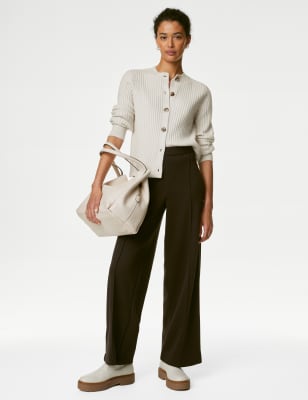 With its timeless ribbed knit, this cardigan is sure to keep you cosy on cooler days. It has a comfy regular fit with a neat crew neckline. The front placket features stylish tortoiseshell buttons for a traditional effect. Fine ribbing adds contrasting texture to the cuffs and hem.n M&S Collection: easy-to-wear wardrobe staples that combine classic and contemporary styles.
