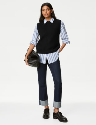This knitted vest is a staple style that will see you through every season. It's made to a regular fit from a stretchy ribbed knit. A round neckline and ribbed trims neatly finish the design. n M&S Collection: easy-to-wear wardrobe staples that combine classic and contemporary styles.