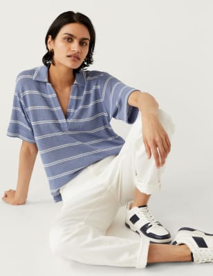 This striped top will put a classic spin on your everyday outfits. Regular fit. Crafted from a textured material with a modern feel. Featuring cool short sleeves and a smart-casual collared neck.n M&S Collection: easy-to-wear wardrobe staples that combine classic and contemporary styles.