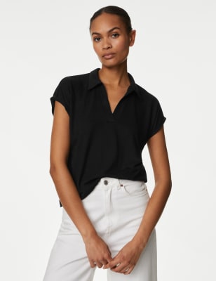 Woven with a touch of linen, this subtly textured top offers a crisp look and a cool hand feel. Regular fit, with breezy short sleeves. The v-neckline is finished with a smart collar.n M&S Collection: easy-to-wear wardrobe staples that combine classic and contemporary styles.