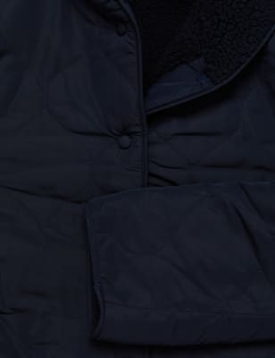 In changeable weather, pull on this versatile puffer jacket. It has a regular fit, with a hooded neck and easy popper fastening. It's even reversible so it can be worn two ways: the quilted side features water-repellent Stormwear™ technology to keep you dry, while the other is made from soft borg for a supremely cosy feel. The large patch pockets and two internal slip pockets make it easy to keep essentials close at hand. n M&S Collection: easy-to-wear wardrobe staples that combine classic and contemporary styles.