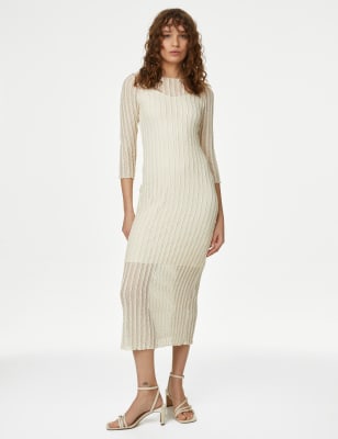 Womens M&S Collection Textured Round Neck Midi Column Dress - Ivory, Ivory