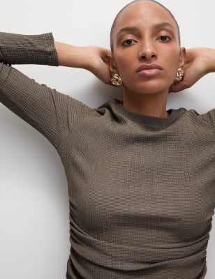 Side ruching adds a flattering draped effect to this long-sleeved top. Regular fit, featuring a neat crew neckline. Made from textured fabric and available as part of a co-ord set. n n M&S Collection: easy-to-wear wardrobe staples that combine classic and contemporary styles.