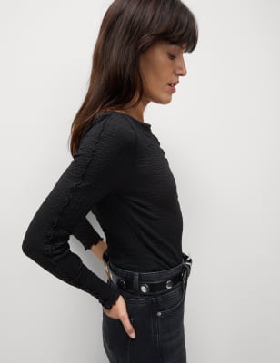 This textured top is an elegant piece that will elevate any outfit. Regular fit, with a slash neck and long sleeves. Added stretch in the fabric ensures a comfortable feel. M&S Collection: easy-to-wear wardrobe staples that combine classic and contemporary styles.