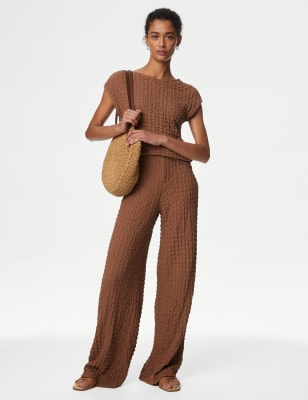 This textured top is a versatile piece to wear casually or dressed up. Regular fit, featuring airy short sleeves and added stretch for comfort. The crew neck is finished with a neat trim.n M&S Collection: easy-to-wear wardrobe staples that combine classic and contemporary styles.