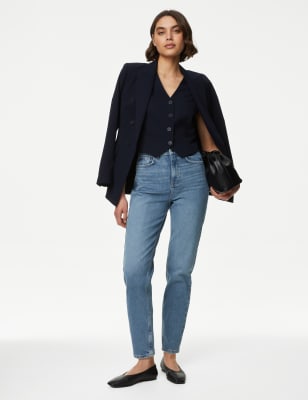 Womens M&S Collection The Mom Jeans - Mid Blue, Mid Blue