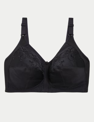 Womens M&S Collection Total Support Embroidered Non Wired Bra D-K - Black, Black