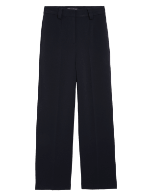 These tailored twill trousers are the perfect addition to your smart wardrobe. They're designed with flattering wide legs and a high waistband, plus handy side pockets. The fabric contains added stretch for easy movement. A back buckle tab, practical belt loops and mock back pockets add extra detail. n M&S Collection: easy-to-wear wardrobe staples that combine classic and contemporary styles.