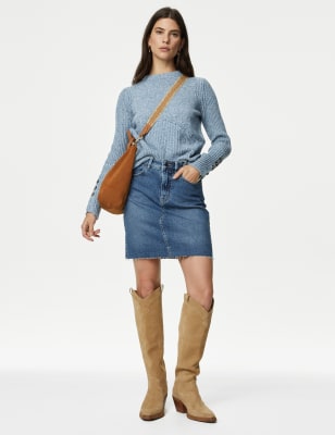 This cotton-rich denim skirt from our Per Una collection will become a staple of your off-duty wardrobe. The five-pocket design comes in a playful mini length and has a faded finish for an authentic look. It secures with a classic button-and-zip fastening.n Per Una: stylish designs crafted with carefully considered details and feminine flourishes.