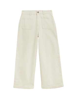 Give your denim collection a contemporary update with these jeans from our Per Una range. They sit comfortably with a high-rise waist and have a flattering wide leg and breezy cropped length. This pair also has added stretch for optimal comfort. Patch pockets on the front and additional pockets at the back are ideal for keeping your essentials close. All M&S denim is made with sustainably sourced cotton and less water. Per Una: stylish designs crafted with carefully considered details and feminine flourishes.