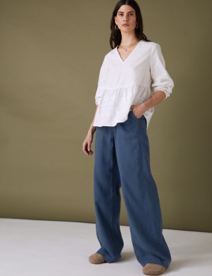 Combine effortless style and ultimate comfort in these linen-blend trousers from our Per Una collection. They're cut in an elegant wide leg fit, with an adjustable drawstring at the high waist that features pretty tassel detailing. Pockets at the front and back add a practical finish.n Per Una: stylish designs crafted with carefully considered details and feminine flourishes.