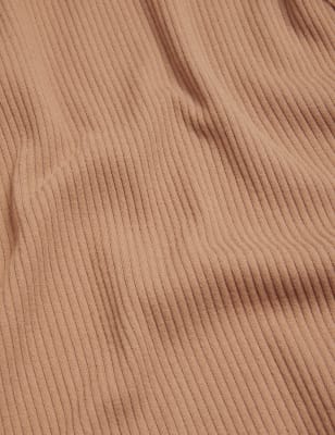 Effortless and sleek, this ribbed dress from our Rosie HomeWear collection is woven with added stretch for incredible comfort. A soft high-neck design is paired with long-length sleeves and a statement thigh-high split. Made with recycled polyester and featuring signature Rosie rose gold hardware.