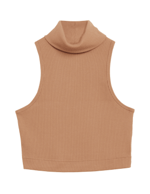 Ribbed for a luxurious feel, this high-neck fitted crop top epitomises laid-back style. Part of our Rosie HomeWear collection, the ultra-soft fabric is made with recycled polyester and features signature Rosie rose gold hardware.