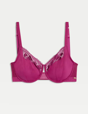 The Jasmine bra from our Rosie Exclusively for M&S range combines intricate embroidery with a flattering silhouette. It features wired cups, designed to reduce your bust size by up to one cup. Swiss-designed florals pair with stripes and shirring for a delicate fusion of textures. Exclusively designed signature rose gold hardware lends a luxurious finish.n n Rosie: contemporary, feminine silhouettes crafted from luxurious fabrics with intricate detailing.