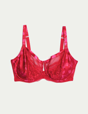 Womens Rosie Peony Silk & Lace Wired Minimiser Bra (C-G) - Red Mix, Red Mix