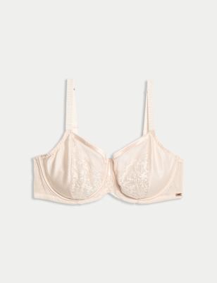 Sumptuous silk and delicate floral lace combine in this elegant bra from Rosie Exclusively for M&S. This minimiser style flatters a fuller bust, cleverly reducing the look of the cup size for a neat silhouette. Underwiring provides extra support and it's non-padded for a lightweight feel. Exclusively designed signature rose gold hardware provides a premium finishing touch. nRosie: contemporary, feminine silhouettes crafted from luxurious fabrics with intricate detailing.