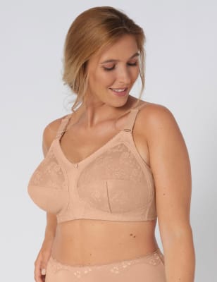 This full cup bra from Triumph strikes the perfect balance between style and comfort, and is made with cotton for day-long softness. This full coverage design has wide straps and a triple hook fastening to help you feel supported. It's non-padded and non-wired to highlight your natural shape, with delicate lace and semi-sheer detailing for a feminine finish.