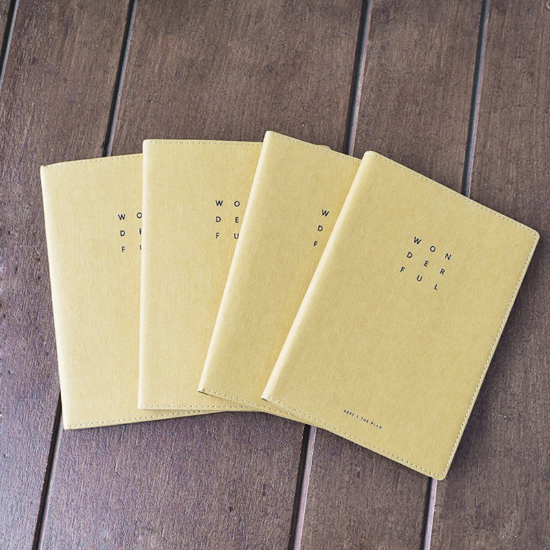 Buku perencana bulanan (monthly organizer) dengan warna dasar coklat. Di dalamnya berisi berbagai format halaman mulai dari perencana bulanan, todo list, sampai dengan halaman kotak-kotak.