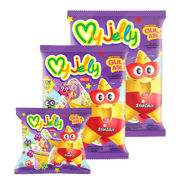MyJelly merupakan jelly dengan Nata de Coco yang dipadukan dengan perisa buah-buahan seperti anggur, leci, melon, jeruk dan stroberi dengan tanpa bahan pengawet dan tanpa pemanis buatan. Disajikan dalam cup berbentuk bintang yang membuatnya menyenangkan bagi si kecil.
