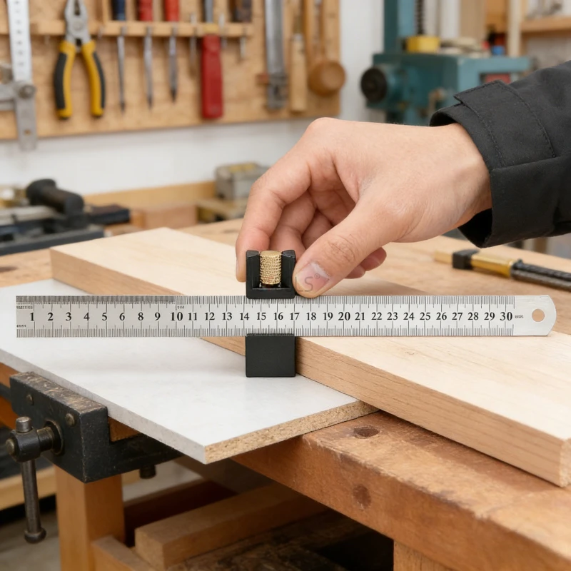 Woodworking Marking Steel Ruler with Limiter Double Sided Metric Inch Scale Precision Vertical Height or Depth Measuring Ruler